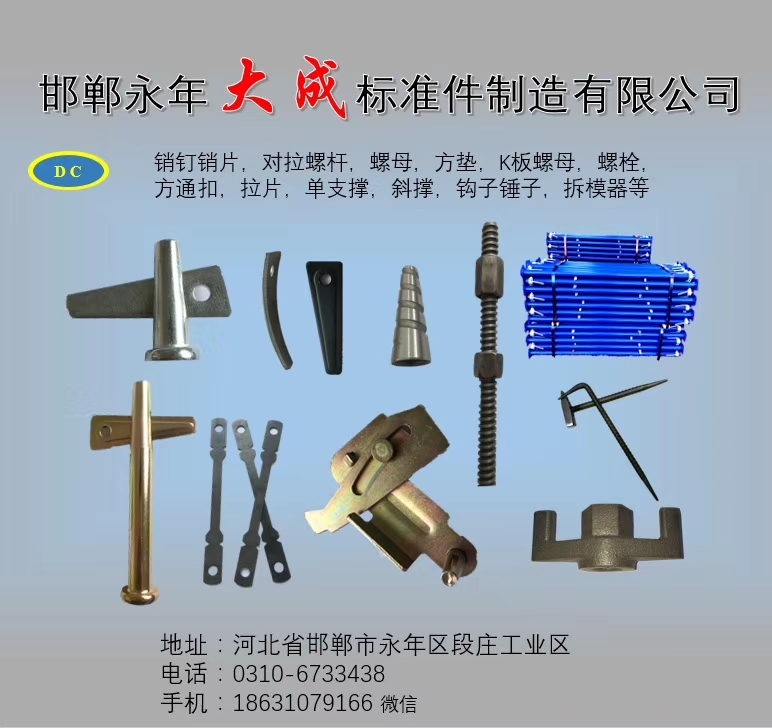 點擊數:49232019-07-08 15:54:18 來源: 鋁模板銷釘_鋁模板配件_建筑扣件螺栓_扣件螺絲生產廠家-永年區大成標準件制造有限公司